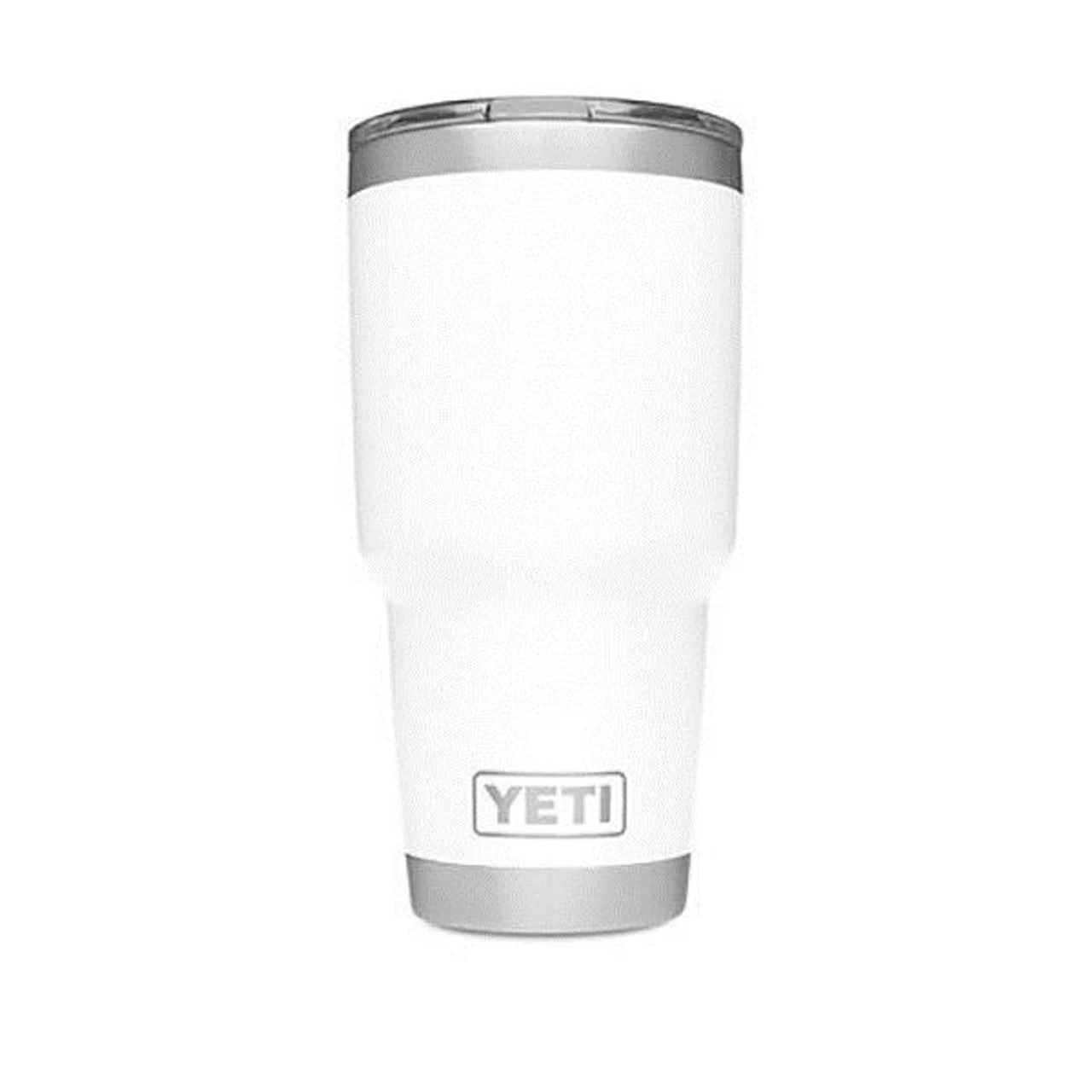 This insulated 30 oz Yeti Rambler, in White, keeps your favorite drink cold or hot as long as you need it. Made with double-wall vacuum insulation, 18/8 kitchen grade stainless steel, dishwasher safe, and No Sweat Design, this travel tumbler will quickly become for your favorite companion.